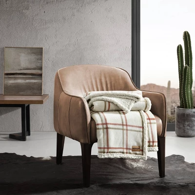 - Open Plaid Print In Orange And Tan On Ivory Ground; Reverses To Solid Ivory Sherpa