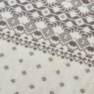 - Gray Print With Southwest Flair On Ivory Ground; Reverses To Solid Ivory Faux Shearling Popcorn Fleece