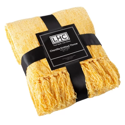 Experience the luxurious plushness of the Chenille Throw Blanket by LHC. This fringed blanket is made of 100% high-quality polyester knit to feel velvety soft and plush. The attractive 5-inch fringe border combined with the elegant silky soft yarn that is resistant to wrinkles, static and fading make this chenille blanket an ideal accent piece in any room of your home. The oversized blanket measures 70 inches long and 60 inches wide and is great for lounging in a recliner and for use as a bedspread. The knitted chenille material is breathable for use in warmer weather and machine washable for softness and comfort that lasts.