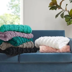 Keep warm through the winter season with this knitted throw blanket from the Midnight Glamour Collection. Chunky and thick knit, this blanket keeps you warm and cozy in chic style for those afternoon naps. Classic cable knit design makes it the perfect accent piece to display over sofas, chairs, and beds.Product Features: Knitted throw blanketLight gray in colorFeatures a classic design with a large modern knitPerfect for displaying over sofas and chairsCare instructions: spot clean onlyFor indoor use onlyDimensions: 50″ wide x 60″ longMaterial(s): acrylic