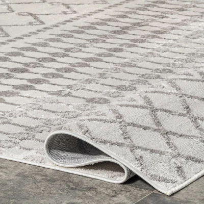 This rugs geometric trellis pattern blends Moroccan-inspired style with functional comfort. Made of soft and cozy synthetic fibers, it is stain resistant and kid and pet friendly. The machine-made construction means this rug will last through even the busiest rooms in your home. A rug pad is recommended to prevent slipping and to keep the rug lying flat in one place.