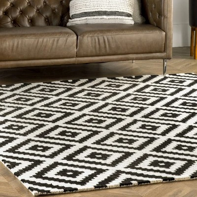 Inspired by Scandinavian textiles, this wool area rug features a bold yet simplistic diamond graphic that instantly draws the eyes. Handmade of 100% wool in India, this naturally durable fiber is perfect for your bedroom, living room, or any room that could use a facelift. This floor covering will add the pop you are looking for while pairing perfectly with any of your existing décor from modern to bohemian.Hand crafted with love and care, each piece is marked by subtle but individual differences that make your rug unique. Create the home you have always dreamed of with our pet-friendly and easy to care for area rugs.
