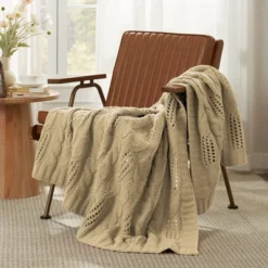 Amelie Home Cable Knitted Throw Blanket For Couch, Chenille Chunky Knit Throw Blanket